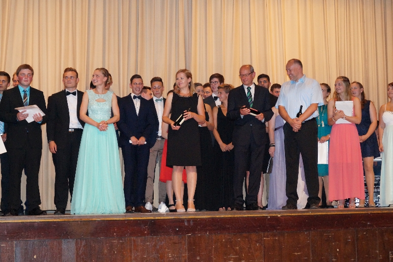 Der Höhepunkt des Abends war die Übergabe der Zeugnisse sowie der Preise und Belobigungen. Die Absolventen erhielten von Schulleiterin Edeltraud Smolka und Oberstufenberater Thomas Beiersdorf ihre Reifezeugnisse. Vier Schüler erhielten für sehr gute Leistungen bis zu einem Schnitt von 1,7 einen Preis und sieben Schülerinnen und Schüler für einen Schnitt zwischen 1,8-2,0 eine Belobigung.