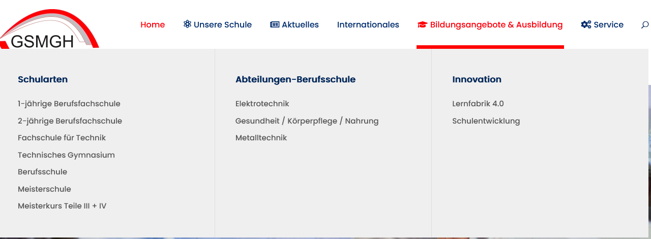 Wenn Sie mit der Maus über einen Menü·punkt fahren, öffnen sich weitere Punkte.